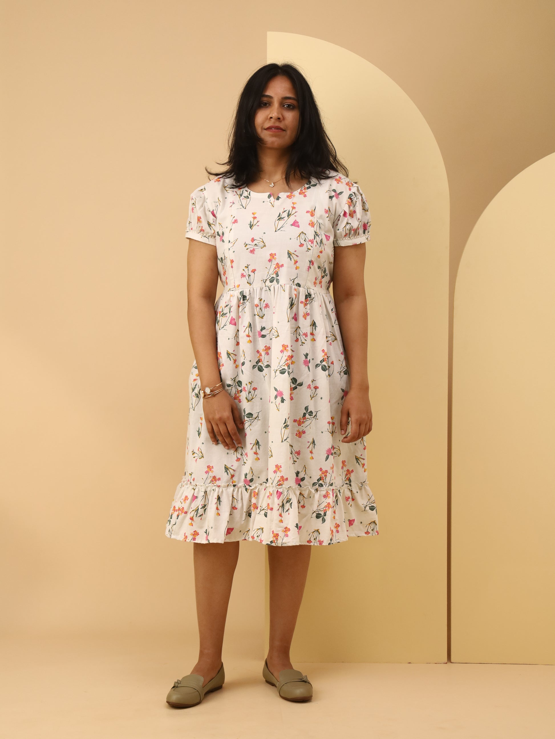 Pastel Bloom Puff Sleeve Cotton maternity Dress